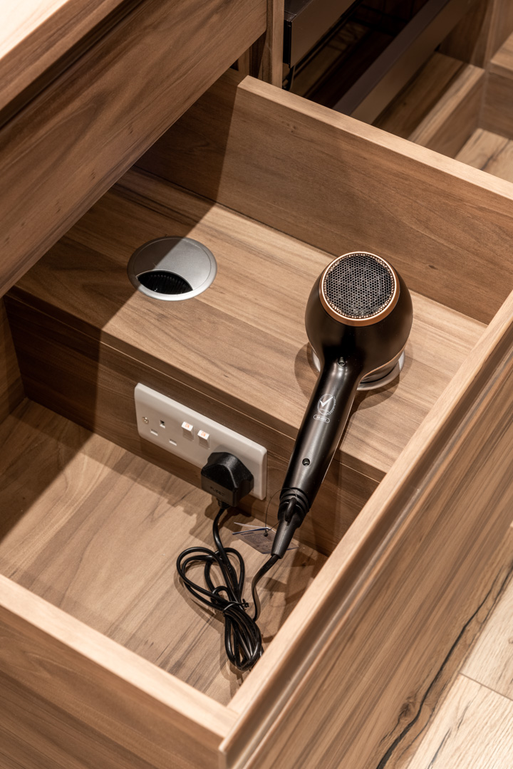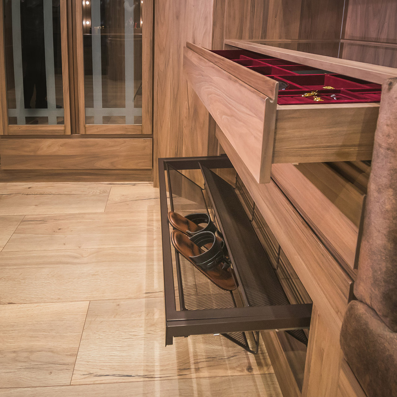 This includes the installation of the right kind of drawers and cabinets, storage units, and elegant accessories according to the specific zone.