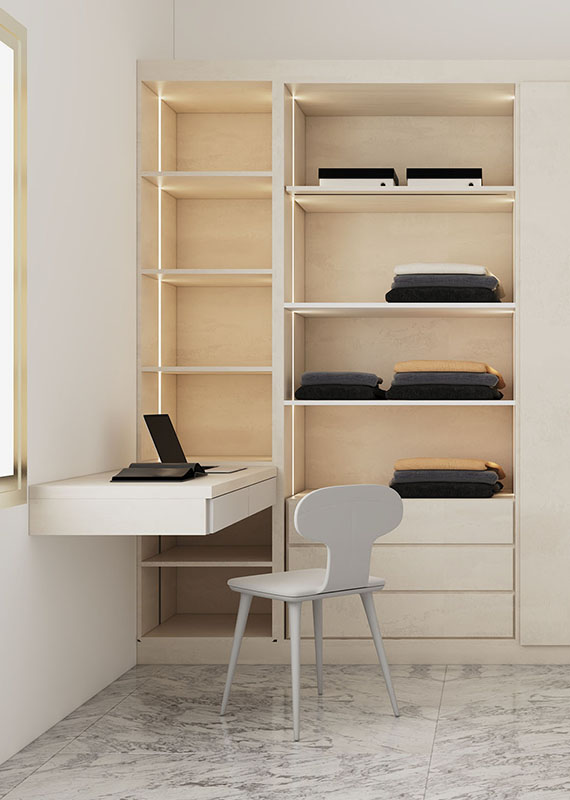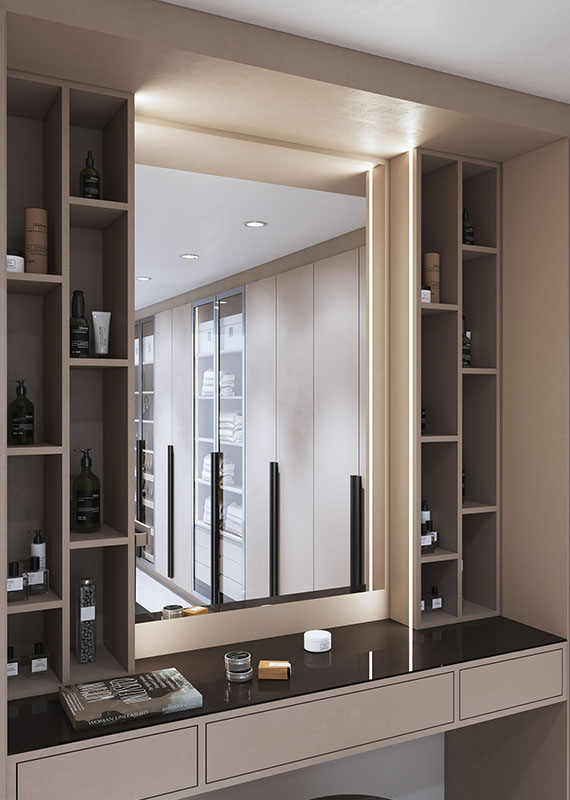 It’s probably the area where space is optimized as best as possible and where storage is maximized in the most practical ways Key Kitchens innovative wardrobe and walk-in closet system with an evolved modularity, allows customization to be adaptable to any space. From the more simple and minimal doors to those characterized by distinctive features such as edges or frames, they are available in three opening options: leaf, folding, and sliding doors.